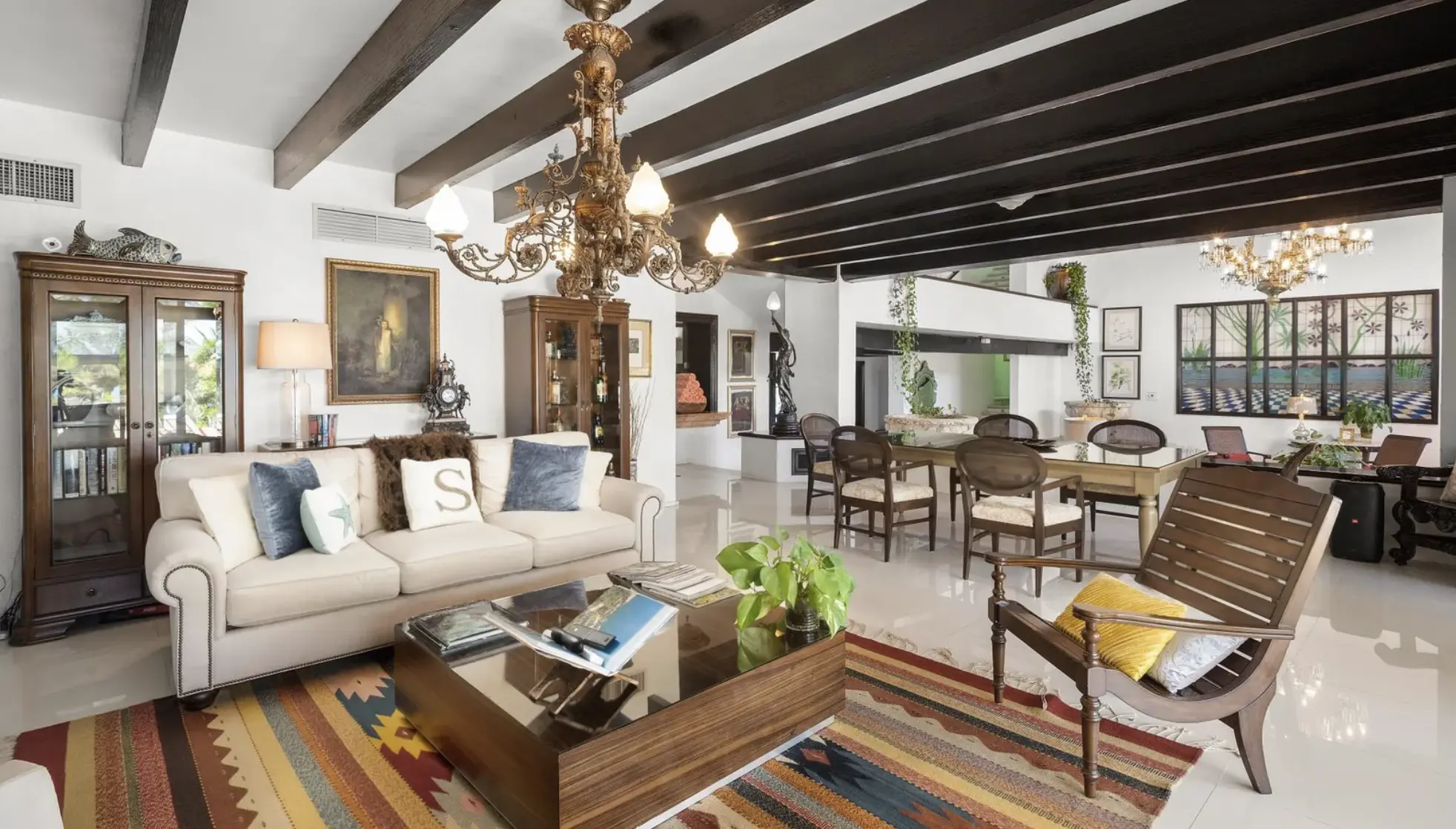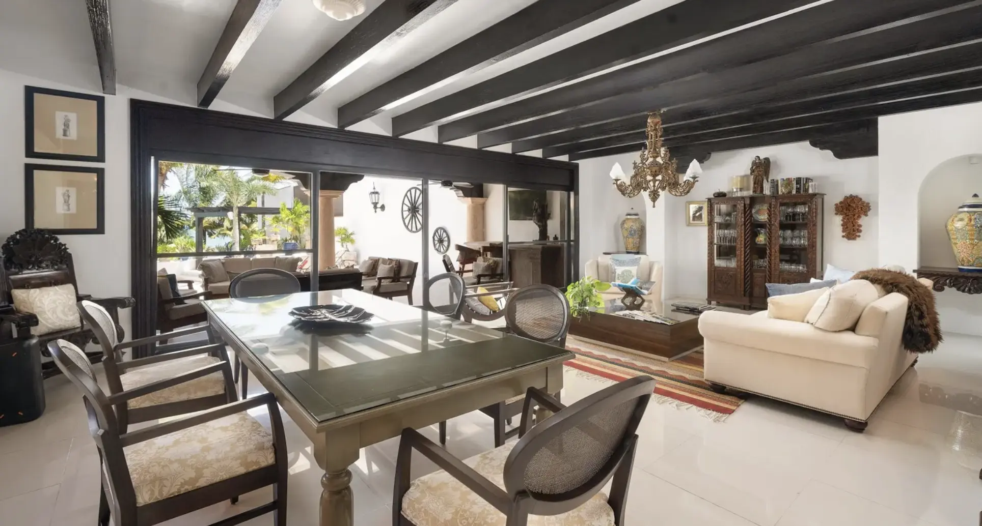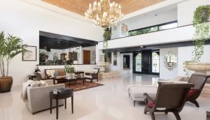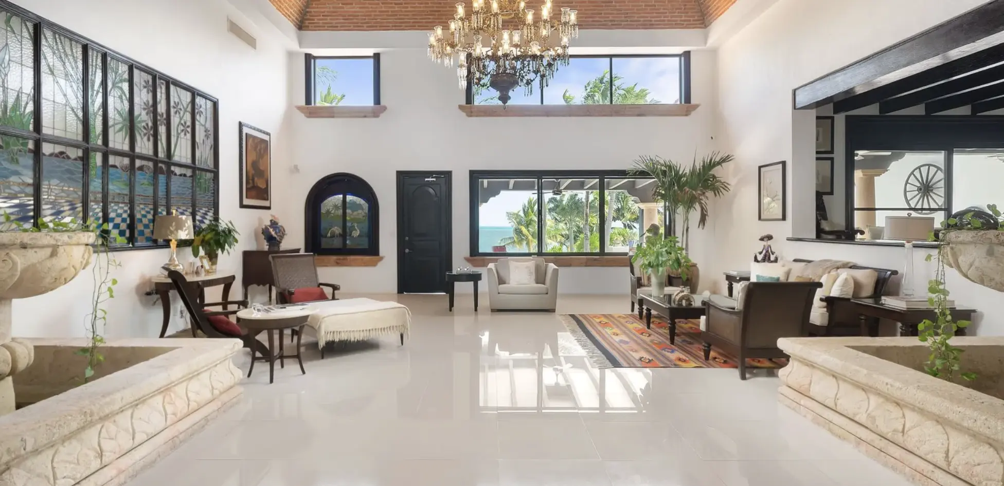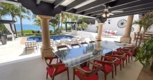 The villa includes a 5-bedroom main residence, a private 1-bedroom studio, and a 2-level apartment with 2 additional suites—ideal for guests, staff, or generating passive income. Inside, grand halls, soaring ceilings, custom chandeliers, and expansive windows frame the Caribbean Sea from nearly every room. Multiple terraces, a resort-style pool, bar, and shaded lounge areas create the perfect backdrop for entertaining or relaxing in total privacy.